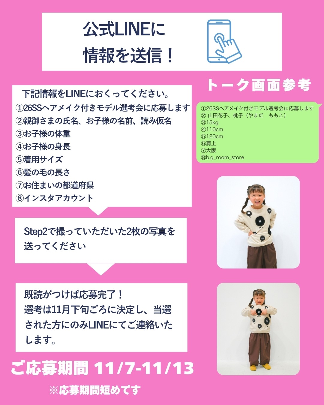 ①26SSヘアメイク付きモデル選考会に応募します